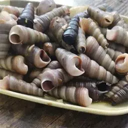 山坑螺呈圆锥形,如小手指大小,每年秋天是吃山坑螺的最佳时节。