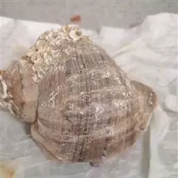 法螺:也称大法螺。贝壳大。壳高351.0毫米,壳宽170.0毫米。螺层约10层。缝合线浅。螺旋部高,…