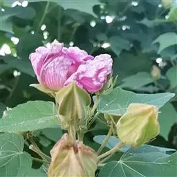 木芙蓉,锦葵科木槿属落叶灌木或小乔木。小枝上有细绒毛;叶片为卵状心形,托叶为披针形,常早落;花单生,…