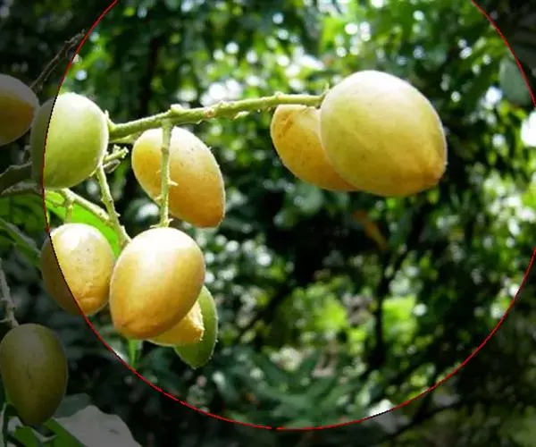 小乔木,高达12米。小枝、叶轴、花序轴、尤以未张开的小叶背脉上散生甚多明显凸起的细油点且密被短直毛。叶有小叶5-11片,小叶卵形或卵状椭圆形,常一侧偏斜,长6-14厘米,宽3-6厘米,基部近圆形或宽楔形,两侧不对称,边缘波浪状或具浅的圆裂齿,叶面中脉常被短细毛;小叶柄长4-8毫米。圆锥花序顶生;花蕾圆球形,有5条稍凸起的纵脊棱;花萼裂片阔卵形,长约1毫米,外面被短柔毛,花瓣长圆形,长约5毫米,两面被短毛或内面无毛;雄蕊10枚,长短相间,长的与花瓣等长,花丝线状,下部稍增宽,不呈曲膝状;子房密被直长毛,花盘细小,子房柄短。果圆形、椭圆形或阔卵形,长1.5-3厘米,宽1-2厘米,淡黄至暗黄色,被细毛,果肉乳白色,半透明,有种子1-4粒;子叶深绿色。花期4-5月,果期7-8月。产海南的其花果期均提早1-2个月。