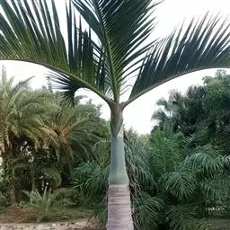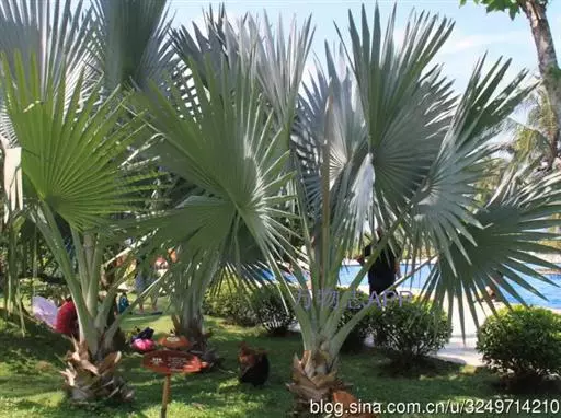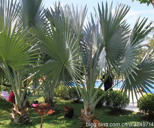 霸王棕,又名稗斯麦桐、美丽蒲葵。树姿魁伟、雄壮,特别是掌状叶硕大丰满,呈神奇的蓝绿色,因此被命名者比之为德国“铁血宰相”——稗斯麦而得名。南方沿海城市营造“椰风海韵”的热带海滨景观。