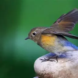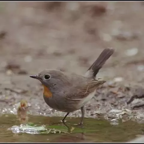 橙胸姬鹟:体长12-16厘米,是一种体型略小的林栖型鹟。尾黑而基部白,上体橄榄褐色,额具一白色横带,…