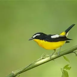 白眉姬鹟是小型鸟类,体长11-14厘米。雄鸟上体大部黑色,眉纹白色,在黑色的头上极为醒目。腰鲜黄色,…