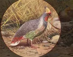 血雉雉科血雉属鸟类,别名血鸡、松花鸡,血雉的雄鸟大覆羽、尾下覆羽、尾上覆羽、脚、头侧、腊膜为红色,…
