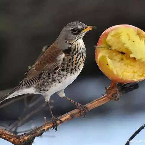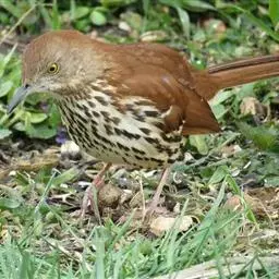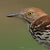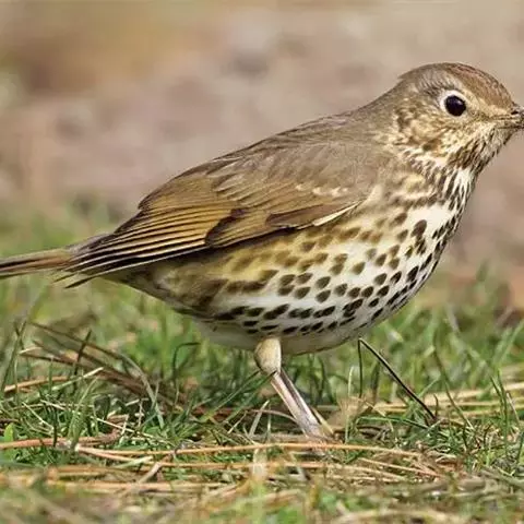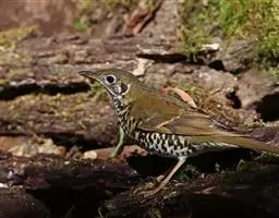 幼鸟上体橄榄褐色,头顶和背具淡棕黄色或棕白色羽干纹,两翅暗褐色,翅上覆羽具橙棕色端斑,外翈羽缘亦为橄榄棕褐色。颏、喉黄白色,两侧各具一条暗褐色纵纹,胸、腹鲜橙棕色具黑褐色端斑,尤以上胸较密而显著,腹至尾下覆羽黄白色,腋羽鲜橙棕色。 虹膜褐色,嘴、脚蜡黄色。