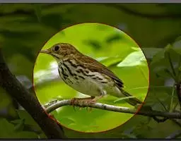 雌鸟从头至尾整个上体暗橄榄褐色,头的两侧和耳覆羽灰黄褐色,耳羽具淡色羽轴纹。两翅黑色,羽缘橄榄色,尾同背,为暗橄榄褐色。颏、喉白色,喉具黑褐色条纹,在两侧条纹几乎连成线状。上胸橄榄灰褐色具有由明显的黑色斑点形成的纵纹,下胸、两胁、腋羽和翼下覆羽橙棕色,腹、肛周和尾下覆羽白色。