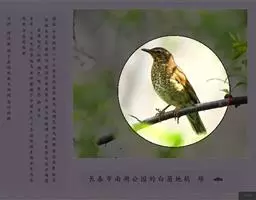白眉歌鸫,是雀形目鸫科鸫属鸟类。体型略小并具有褐色斑点的歌鸫,上体橄榄褐色,眉纹白色,脸部斑驳,…