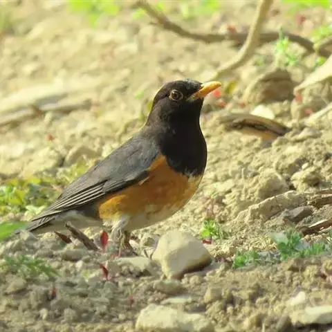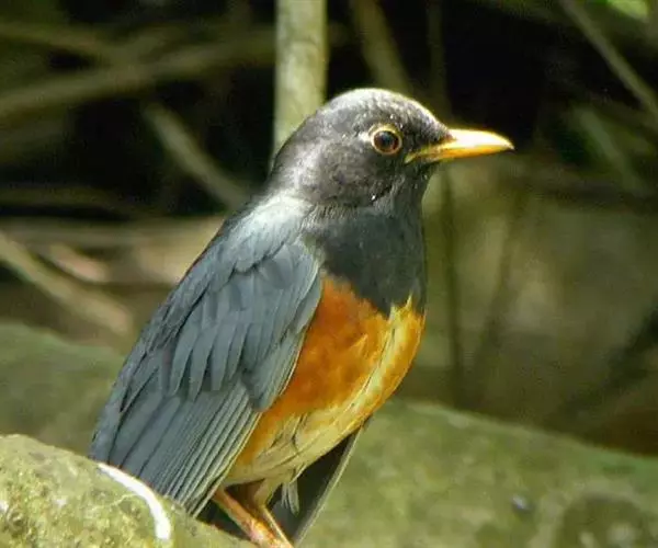黑胸鸫(学名:Turdus dissimilis)属中型鸟类,体长20-30厘米。雄鸟整个头、颈、胸黑色,其余上体暗灰色,下体橙棕色,极为醒目。嘴、脚蜡黄色。雌鸟上体橄榄褐色,颏、喉白色,上胸橄榄褐色具黑色斑点,其余与雄鸟相似。栖息在海拔1200-1700米的丘陵地带、常单独或成对活动,有时也见成小群。地栖性,多在林下地上和灌丛间活动和觅食。性胆怯,善于隐蔽。分布于中国西南部、印度东北部、缅甸、泰国、老挝、越南等地。