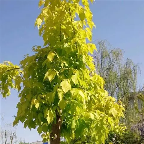 糖槭落叶乔木(学名:Acer saccharum Marsh)。株高12—24米,冠幅可达9—15米。直立生长,树形为卵圆形。树势雄伟、典雅。单叶对生,长可达10厘米。叶子绿色,秋季会变为黄色至金黄色以至橘红色。花期在四月,在叶展开前开放,小花黄绿色。翅果,绿色,于十月成熟,变成褐色。幼树树皮光滑,棕灰色,长大后会变得粗糙,似象皮。
