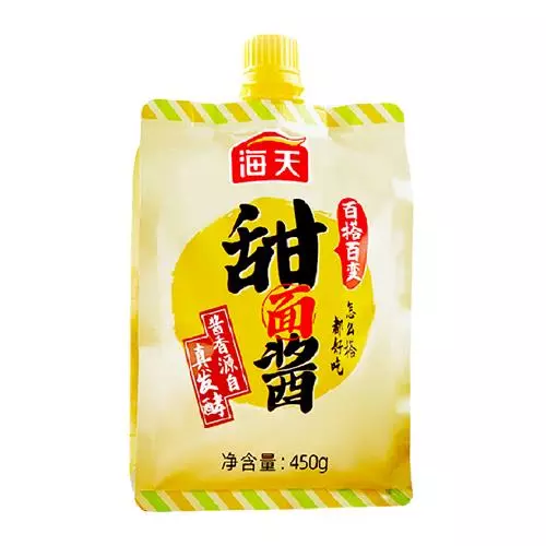 甜面酱经历了特殊的发酵加工过程,它的甜味来自发酵过程中产生的麦芽糖、葡萄糖等物质。鲜味来自蛋白质分解产生的氨基酸,食盐的加入则产生了咸味。甜面酱含有多种风味物质和营养物,不仅滋味鲜美,而且可以丰富菜肴营养,增加菜肴可食性,具有开胃助食的功效。