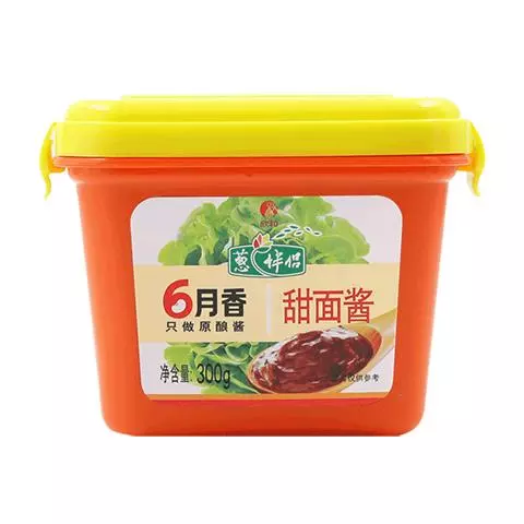 优质甜面酱应呈黄褐色或红褐色,有光泽,散发酱香及酯香气。无酸、苦、焦及其他异味,黏稠适度,无杂质。保管中应注意清洁,防止高温,忌沾生水,可用熟菜油搅匀,以防止生霉。保质期一般为3个月。