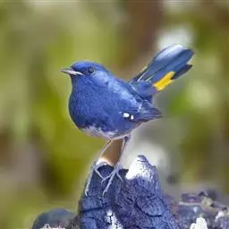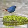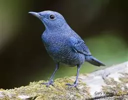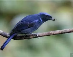 纯蓝仙鹟(学名:Cyornis unicolor):体长16-17厘米,体重18-23克。是一种体型略大的浅蓝色或近褐色的鹟。雄鸟上体亮丽钴蓝,眼先黑,喉及胸浅蓝,腹部灰白,尾下覆羽近白。与铜蓝鹟的区别在嘴较长,体羽无绿色,眼圈黄褐。雌鸟上体灰褐,尾多棕褐色,下体灰褐,眼圈及眼先黄褐,有时上嘴基上有狭窄的暗青绿色带。亚成鸟褐色并具黑色及黄褐色杂斑。虹膜褐色,嘴褐色,脚褐色。