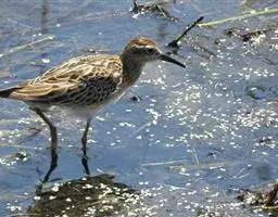 林鹬体长约20厘米,体型略小,纤细,褐灰色,腹部及臀偏白,腰白。上体灰褐色而极具斑点;眉纹长,…