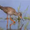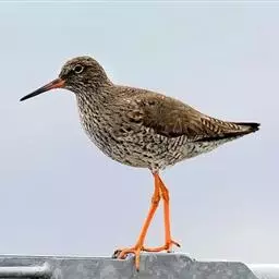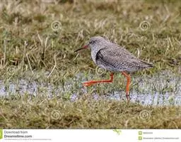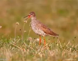 红脚鹬:体长28厘米,上体褐灰,下体白色,胸具褐色纵纹。飞行时腰部白色明显,次级飞羽具明显白色外缘。…