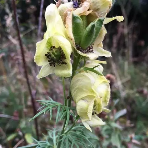 与瓜叶乌头的区别:花瓣的距长4-6毫米,拳卷。