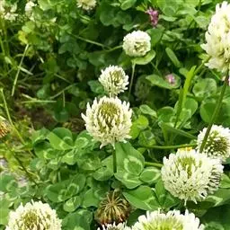 白车轴草,豆科车轴草属的多年生草本植物,茎贴地匍匐;叶柄直立,小叶心形,边缘具细齿,叶脉明显,…