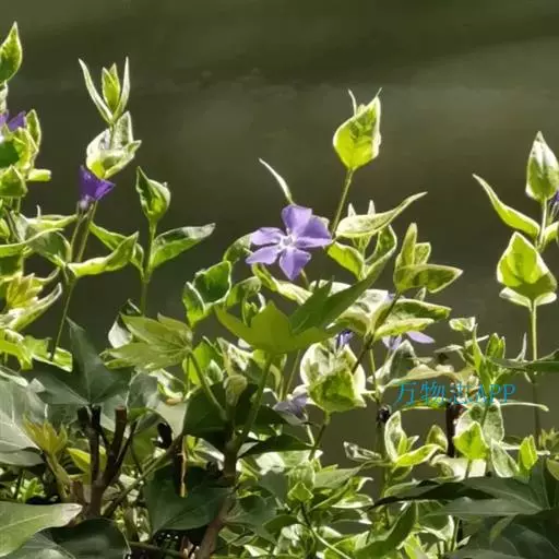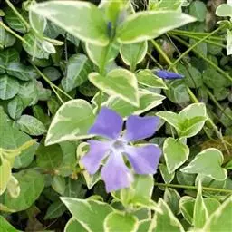 蔓性半灌木。矮生、枝条蔓性、匍匐生长,长达2米以上。叶椭圆形或卵形,先端急尖,对生,有叶柄,亮绿色,有光泽,叶缘乳黄色,分蘖能力十分强。高脚蝶状花冠,花单生,紫罗兰色。经过引种栽培试验,发现它适应性强,对土壤要求不严,生长快。夹竹桃科蔓长春花属蔓长春花的变种。 花叶蔓长春