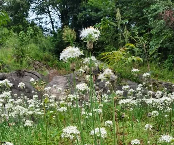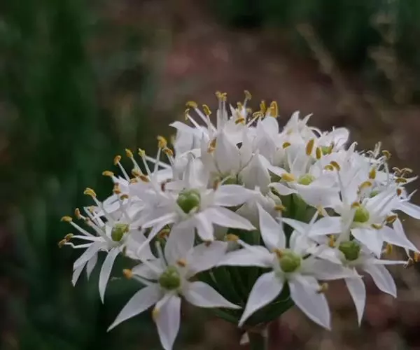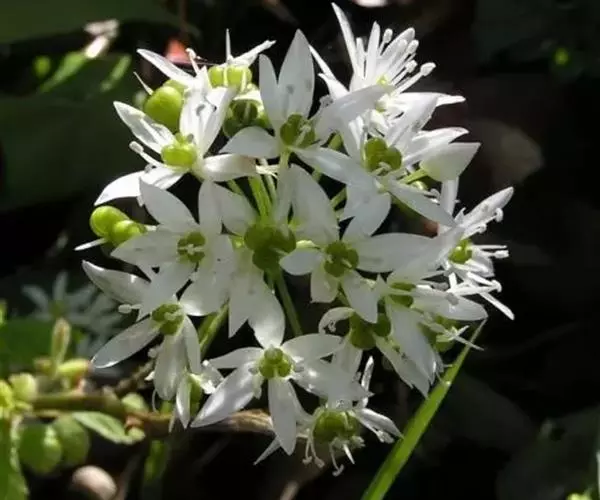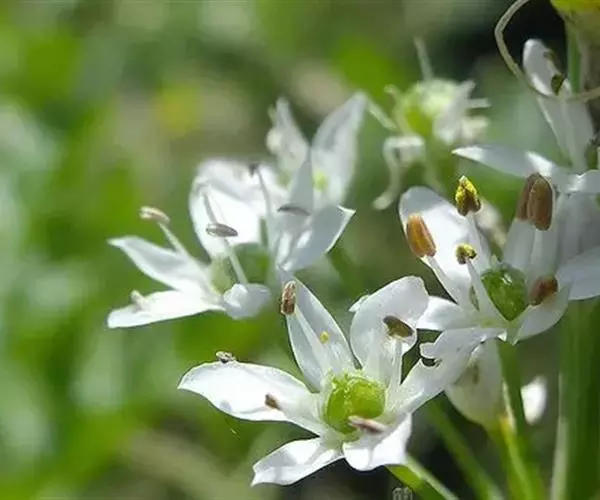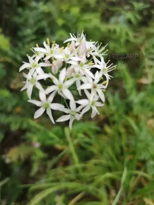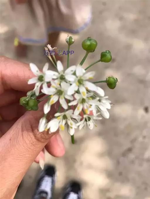 野韭 具横生的粗壮根状茎,略倾斜。鳞茎近园柱形;鳞茎外皮暗黄色至黄褐色,破裂成纤维状,网状或近网状。叶三棱状条形,背面具呈龙骨状隆起的纵棱,中空,比花序短,宽1.5 -8毫米 ,沿叶缘和纵棱具细糙齿或光滑。花葶圆柱状,具纵棱,有时棱不明显,高25 -60厘米 ,下部被叶鞘;总苞单侧开裂至2裂,宿存;伞形花序半球状或近球状,多花;小花梗近等长,比花被片长2-4倍,基部除具小苞片外常在数枚小花梗的基部又为1枚共同的苞片所包围;花白色,稀淡红色;花被片具红色中脉,内轮的矩圆状倒卵形,先端具短尖头或钝圆,长(4.5-) 5.5-9 (-11)毫米,宽1.8 -3.1毫米 ,外 轮的常与内轮的等长但较窄,矩圆状卵形至矩圆状披针形,先端具短尖头 ;花丝等长,为花被片长度的 1/2-3/4 。基部合生并与花被片贴生,合生部分高0.5-1毫米 ,分离部分狭三角形,内轮的稍宽;子房倒圆锥状球形,具 3 圆棱,外壁具细的疣状突起。花果期6月底到9月。