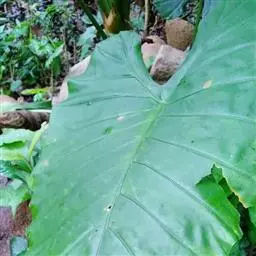 野芋是天南星科芋属一年生湿生草本植物。块茎球形;叶柄直立肥厚,长达1米以上;叶片薄革质盾状,…