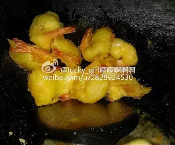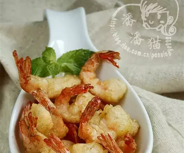 4、用手拿着虾尾,沾满脆浆,放落将滚之油中炸至金黄色而又熟,捞起上碟。可蘸桔油或茄汁吃。