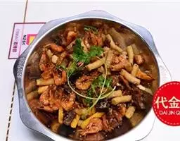 银丝顺风虾是一道美食,主要食料有活基围虾、粉丝等。