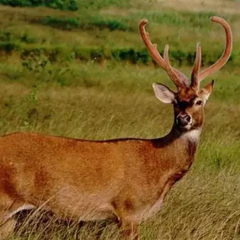 水鹿是偶蹄目鹿科鹿属哺乳动物,又称黑鹿、春鹿、山牛。身体高大粗壮。头骨细长,鼻骨、额骨发达,…
