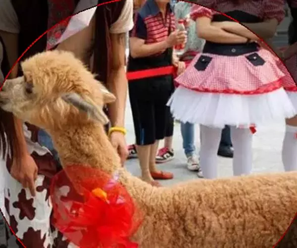 羊驼,这个名字会使人想到它的长相,既有某些和骆驼相似的地方,也有某些和绵羊相仿的特点。的确,羊驼有点像骆驼,例如它的颈较长,蹄子是肉质的,走路的姿态也类同,胃里也有水囊,可以数日不饮水。根据这些特点,当地又称它“美洲驼”。但仔细观察,它的外形和构造与骆驼又有很大的差别;如身体较小,背上无肉峰,四肢很细,脚的前端有弯曲而尖锐的蹄。脸细长,耳尖长,眼睛很大,非常清秀。尾巴短,毛细长。从这些特点看,它又有点像绵羊了。特别是它的足趾,比骆驼要分开得多,这是为了适应于在岩石上行走和涉水游泳。羊驼一般比骆马高些,多为1米左右。毛色有白色,驼色和两者相混的。毛有的长达60—80厘米,柔软细致如丝,并有光泽和弹性,比羊皮直,可织毛织品。