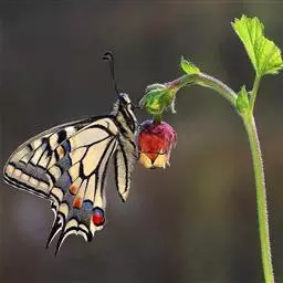 凤蝶的成虫性成熟后,在蛹中沿着头和胸破壳钻出,刚羽化的蝴蝶翅膀皱褶和腹部膨胀,这时的蝴蝶无法躲避天敌,翅膀展开后,凤蝶就可以飞翔了,凤蝶的前后翅不同步扇动,成虫以腐烂果实的汁液为食物。
