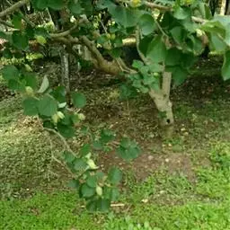 叶互生,卵形先端锐尖,基部钝圆形上半部粗锯齿缘。