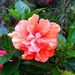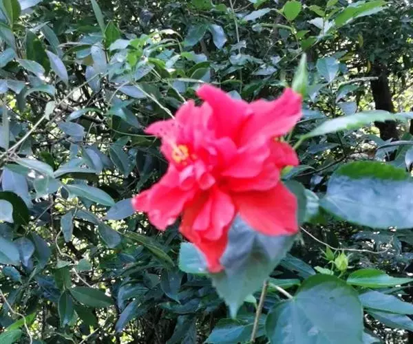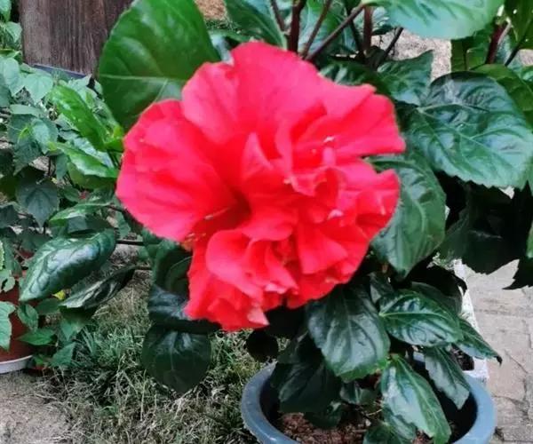 重瓣,较朱槿为大,花萼小,钟形,先端5裂,基部具有苞片多枚;花瓣多枚,排列成彩球状,全年开花,花大型单立腋生,以鲜红色最多。