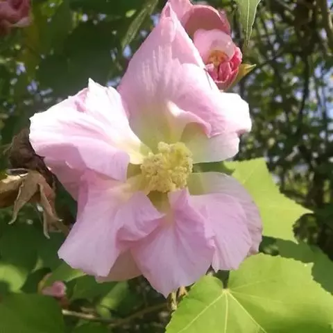海滨木槿是锦葵科木槿属植物,落叶小乔木,株高3-5米,胸径20厘米,扁球形树冠,枝叶繁盛。…