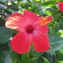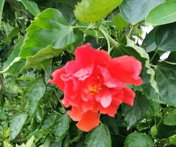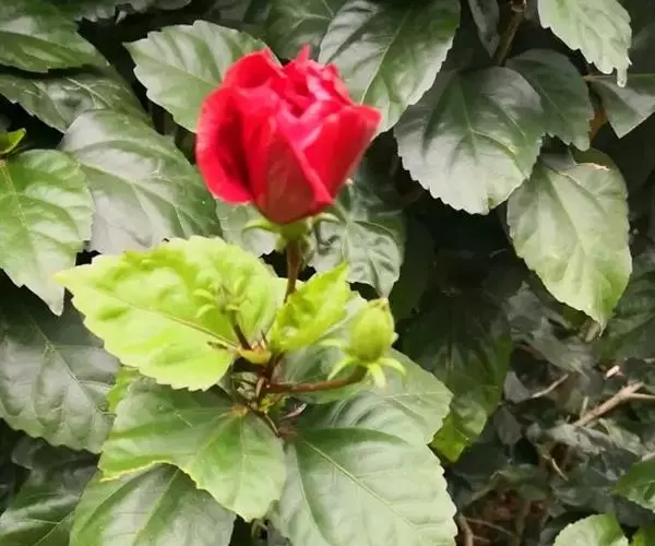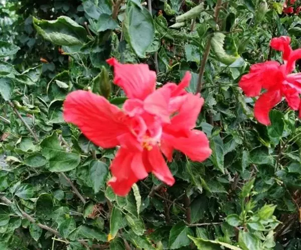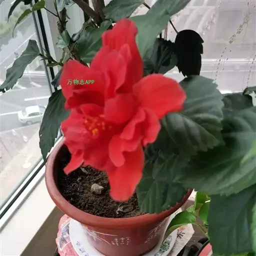 重瓣朱槿(Hibiscus rosa-sinensis L. var. rubro-plenus Sweet),又名酸醋花、月月开、朱槿牡丹,常绿小灌木。