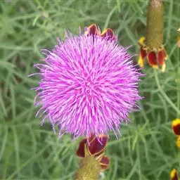 蓟,别名地萝卜、大蓟、山萝卜等,为菊科蓟属多年生草本植物。块根纺锤状或萝卜状。茎直立,茎枝有条棱,…