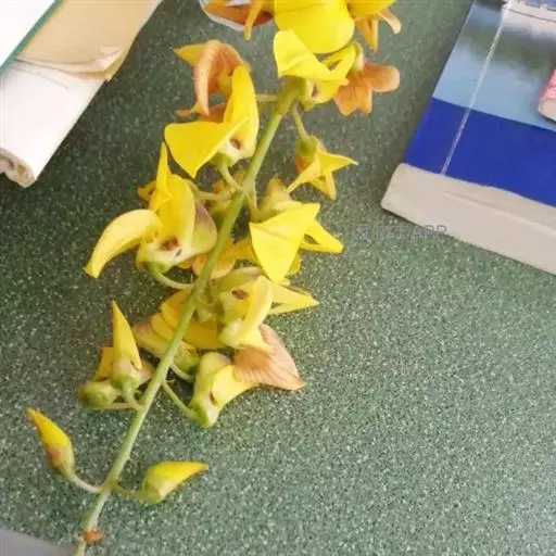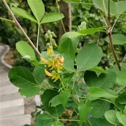 猪屎豆又名:椭圆叶猪屎豆、三圆叶猪屎豆。多年生草本,或呈灌木状;茎枝圆柱形,具小沟纹,密被紧贴的短柔毛。托叶极细小,刚毛状,通常早落;叶三出,柄长2-4cm;小叶长圆形或椭圆形,长3-6cm,宽1.5-3cm,先端钝圆或微凹,基部阔楔形,上面无毛,下面略被丝光质短柔毛,两面叶脉清晰;小叶柄长1-2mm。总状花序顶生,长达25cm,有花10-40朵;苞片线形,长约4mm;早落,小苞片的形状与苞片相似,长约2mm,花时极细小,长不及1mm,生萼筒中部或基部;花梗长3-5mm;花萼近钟形,长4-6mm,五裂,萼齿三角形,约与萼筒等长,密被短柔毛;花冠黄色,伸出萼外,旗瓣圆形或椭圆形,直径约10mm,基部具胼胝体二枚,冀瓣长圆形,长约8mm,下部边缘具柔毛,龙骨瓣最长,约12mm,弯曲,几达90度,具长喙,基部边缘具柔毛;子房无柄。荚果长圆形,长3-4cm,径5-8mm,幼时被毛,成熟后脱落,果瓣开裂后扭转;种子20-30颗。花果期9-12月间。