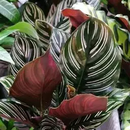 红背卧花竹芋枝叶挺拔,叶面绿色,背面红色,十分耐看,是较好的室内观叶植物。盆栽宜点缀宾馆厅堂、车站…