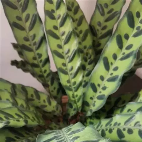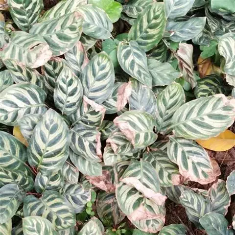 应依据“勤施薄施”的原则,生长旺季每2周施一次花生麸与复合肥的混合肥或腐熟堆肥。肥料的营养成分应以氮肥为主,磷、钾肥次之。由于竹芋为观叶植物,适当增施氮肥,能使叶片色泽更加优美。另外,可用含氮量达46%的尿素配制成0.1%的溶液,加含磷大于50%、含钾大于30%的磷酸二氢钾配制成0.2%的溶液作根外追肥,在早上露水未干时或傍晚施用效果较好。喷施时要用细孔喷雾器把叶片正反两面全喷到,每周喷1次,连续喷施3次后停止1次,然后再连续喷施。特别要注意的是施肥的浓度不宜过大,否则易引起叶片灼伤造成肥害,严重时甚至引起植株枯死。冬季休眠期和夏天太炎热时,要停止施肥。