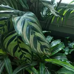 猫眼竹芋(学名:Calathea veitchiana Veitch ex Hook.f.) :竹芋科,肖竹芋属多年生常绿草本观叶植物。株高可达100厘米,叶片长椭圆形,头状花序,小苞片膜质;萼片近相等;花冠管与萼片硬革质,蒴果开裂为3瓣,种子三角形。