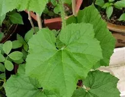 叶柄稍粗糙,有糙硬毛,长10-16(-20)厘米;叶片宽卵状心形,膜质,长、宽均7-20厘米,两面甚粗糙,被糙硬毛,3-5个角或浅裂,裂片三角形,有齿,有时边缘有缘毛,先端急尖或渐尖,基部弯缺半圆形,宽2-3厘米,深2-2.5厘米,有时基部向后靠合。