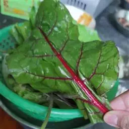 叶菾菜又名君达菜、牛皮菜、厚皮菜、是藜科甜菜属以嫩叶供食用栽培种的一个变种,为2年生蔬菜。原产于欧洲地中海沿岸,从阿拉伯通过丝绸之路传入我国。叶菾菜是藜科(Chenopodiaceae)甜菜属中以嫩叶作菜用的栽培种,二年生草本植物。学名Beta vulgaris L.var.cicla Koch.,别名菾菜(《别录》),甜菜(《日华子本草》),牛皮菜(《滇南本草》),石菜(《本草求原》),杓菜、猪牳菜(《广州植物志》),莙荙菜,光菜(《中国蔬菜栽培学》)。染色体数2n=2x=18。主根为肉质块根,含糖质,可制糖。煮食、凉拌或炒食,也可作饲料。