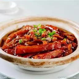 梅菜扣肉,汉族传统名菜,属客家菜 。制作材料有五花肉、梅菜、葱白、姜片等。
