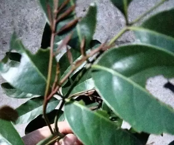 半常绿乔木,高达10余米,全体无毛,被有橙黄色盾状着生的圆形腺体;枝条细瘦,老后暗褐色,干时黑褐色,皮孔不明显。偶数羽状复叶长12-25厘米,叶柄长3-8厘米,小叶3-5对,稀同一枝条上亦有少数2对,近于对生,具长0.6-1.5厘米的小叶柄,叶片革质,长6-14厘米,宽2-5厘米,长椭圆状披针形至长椭圆形,全缘,顶端渐尖或短渐尖,基部歪斜,两面具光泽,侧脉10-13对。