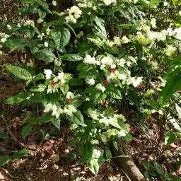 烟火树 Merr.)是唇形科、大青属常绿灌木或小乔木,株高可达4米。幼枝方形,墨绿色。叶对生,…