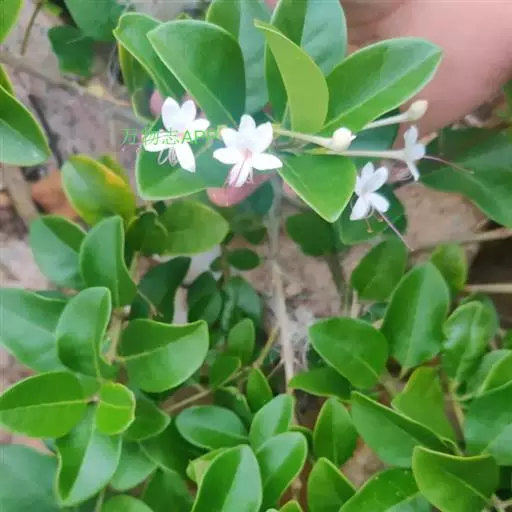 叶对生,薄革质,卵形、椭圆形或椭圆状披针形、卵状披针形,长3-7厘米,宽1.5-4.5厘米,顶端钝尖,基部楔形或宽楔形,全缘,常略反卷,表面深绿色,背面淡绿色,无毛或背面沿脉疏生短柔毛,两面都散生黄色细小腺点,干后褪色或脱落而形成小浅窝,侧脉4-7对,近叶缘处向上弯曲而相互汇合;叶柄长约1厘米;聚伞花序通常由3朵花组成,少为2次分歧,着生于叶腋或枝顶叶腋;花很香,花序梗长2-4厘米;苞片线形,长约2毫米,对生或近于对生;花萼钟状,外被细毛,顶端微5裂或在果时几平截,萼管长约7毫米;花冠白色,顶端5裂,裂片长椭圆形,长约7毫米,花冠管长2-3厘米,外面几无毛,有不明显的腺点,内面密生绢状柔毛;雄蕊4,偶见6,花丝紫红色,细长,与花柱同伸出花冠,花柱较花丝长或近等长,柱头2裂。