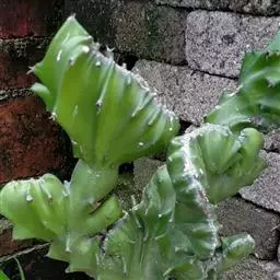魁伟玉原产南非,是一种大戟科的多年生肉质植物,植株具粗圆筒形肉质茎,有10条以上的突出棱,…