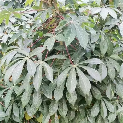 盾叶木薯(M. peltata):叶片盾状,全缘,叶面灰绿色。叶脉凸出明显,粉红色。花叶木薯又名斑叶木薯,原产热带美洲。喜温暖和阳光充足,不耐寒,栽培环境不宜过干或过湿,土壤要求肥沃、疏松和排水良好的微酸性壤土,冬季温度不低于15℃。