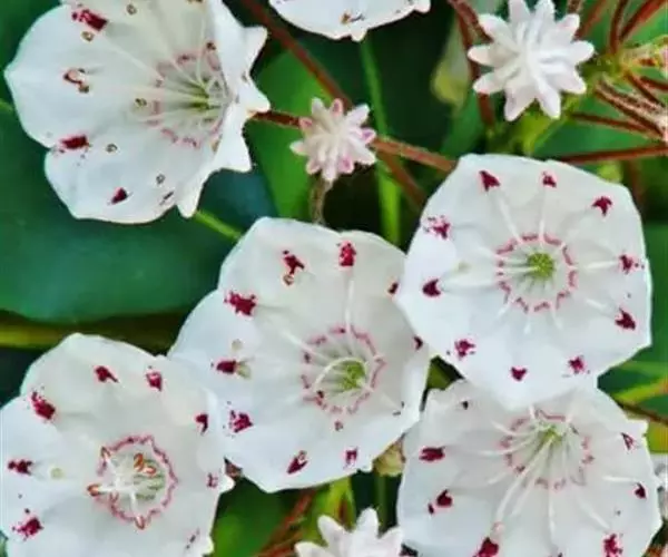 玛德琳山月桂 ( Kalmia latifolia ‘Madeline’),花色为白色;
