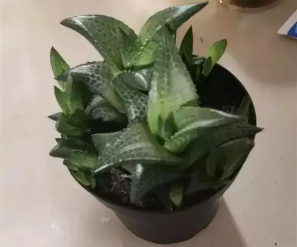龙鳞(学名:Haworthiopsistessellata (Haw.) G.D.Rowley)又名蛇皮掌,是阿福花科十二卷属的多年生植物。中文名来源于其日文名“竜鳞”,因叶面纹路酷似龙的鳞片或蛇皮而得名。百合科十二卷属。肉质叶排列成莲座状,无茎,株幅6-10cm,具叶10-15片。叶5cm,基部宽2-2.8cm,阔卵状三角形,叶端具小尖,外弯伸展,肉质,坚硬,暗绿色,背面稍红。龙鳞喜温暖干燥和阳光充足环境,较耐寒,耐干旱和半阴,怕水湿和强光暴晒,夏季高温休眠。