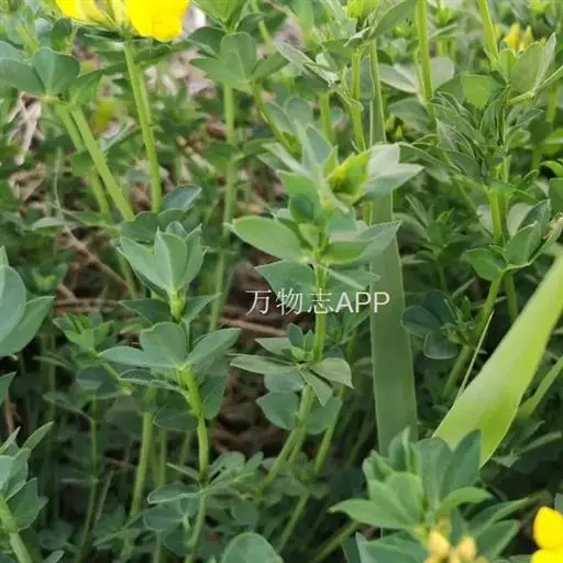 多年生草本,高15-50厘米,全株散生稀疏白色柔毛或秃净。具主根。茎丛生,平卧或上升,实心,近四棱形。羽状复叶小叶5枚;叶轴长4-8毫米,疏被柔毛,顶端3小叶,基部2小叶呈托叶状,纸质,斜卵形至倒披针状卵形,长5-15毫米,宽4-8毫米,中脉不清晰;小叶柄甚短,长约1毫米,密被黄色长柔毛。