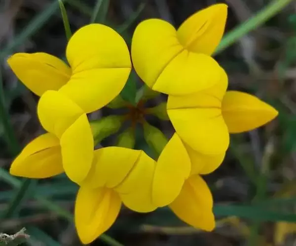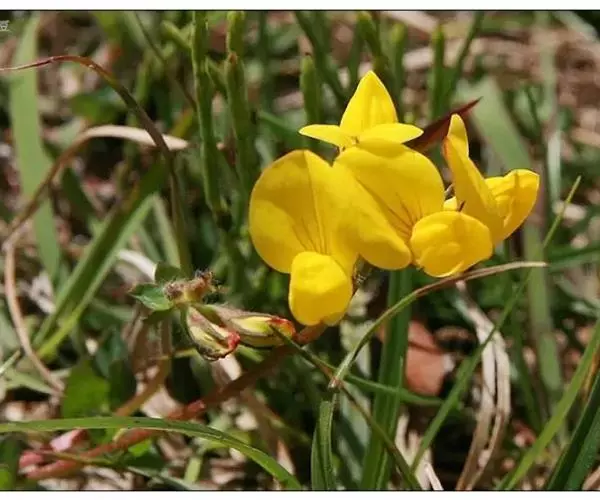 百脉根(学名:Lotus corniculatus Linn.)是豆科、百脉根属多年生草本植物,高可达50厘米,具主根。茎丛生,实心,羽状复叶,叶片纸质,斜卵形至倒披针状卵形,中脉不清晰;小叶柄甚短,伞形花序;花集生于总花梗顶端,花梗短,苞片叶状,与萼等长,宿存:萼片钟形,萼齿狭三角形,花冠黄色或金黄色,旗瓣扁圆形,花丝分离;花柱直,子房线形,荚果直,褐色,种子细小,卵圆形,5-9月开花,7-10月结果。