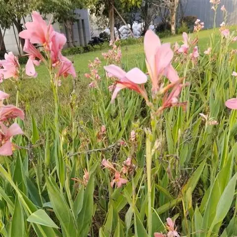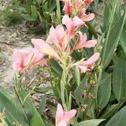 粉美人蕉:是一种球根草本植物。根茎延长,株高1.5-2米;茎绿色。叶片披针形;总状花序疏花,单生或…